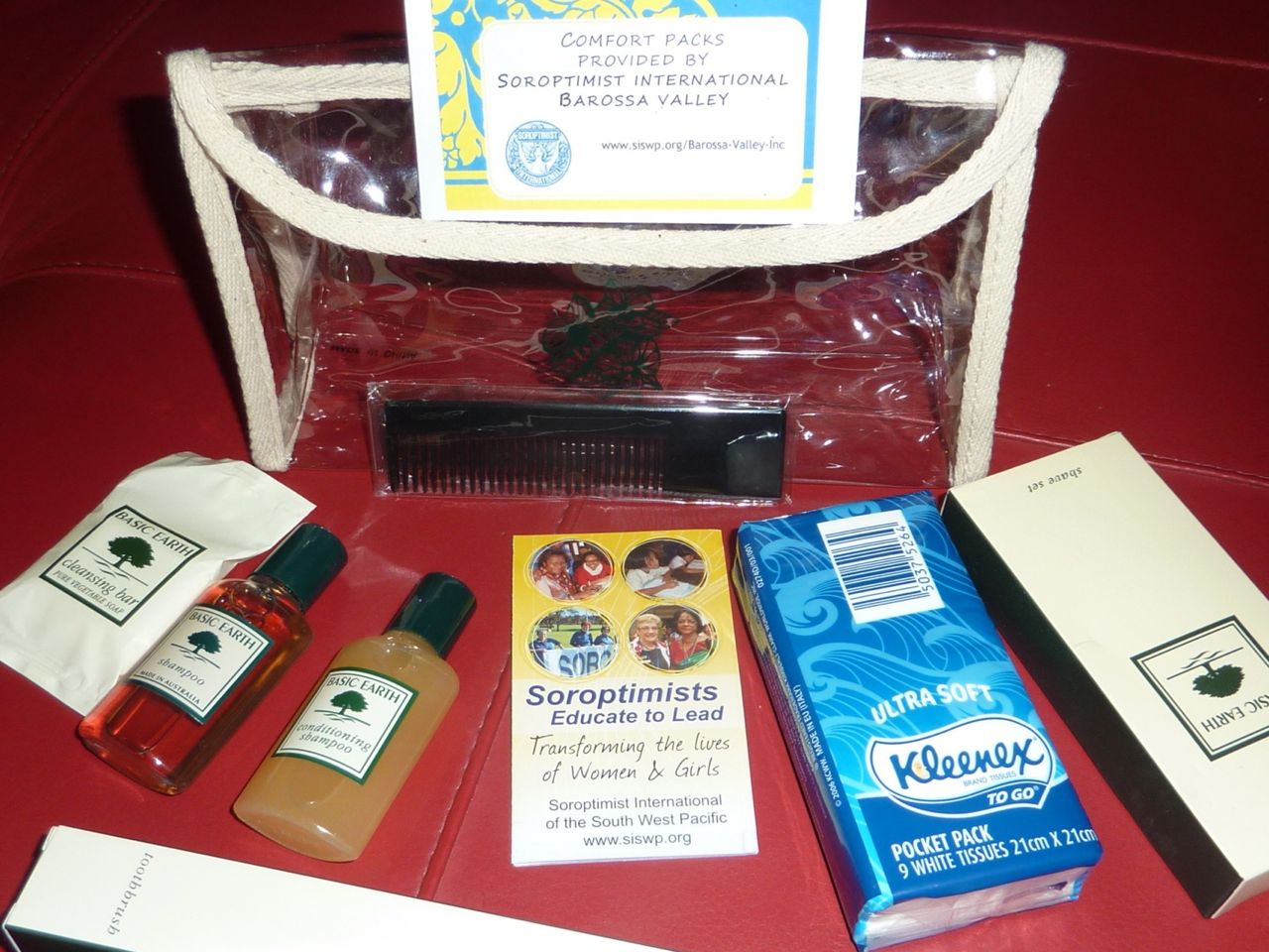 Items including soap, shampoo, a tooth brush and shaving kits are out together into an "Essential Care Pack" and delivered to the Angaston and Tanunda Hospitals. The packs are given to people who find themselves admitted to hospital unexpectantly without basic hygiene items and to those without family or other support networks. |